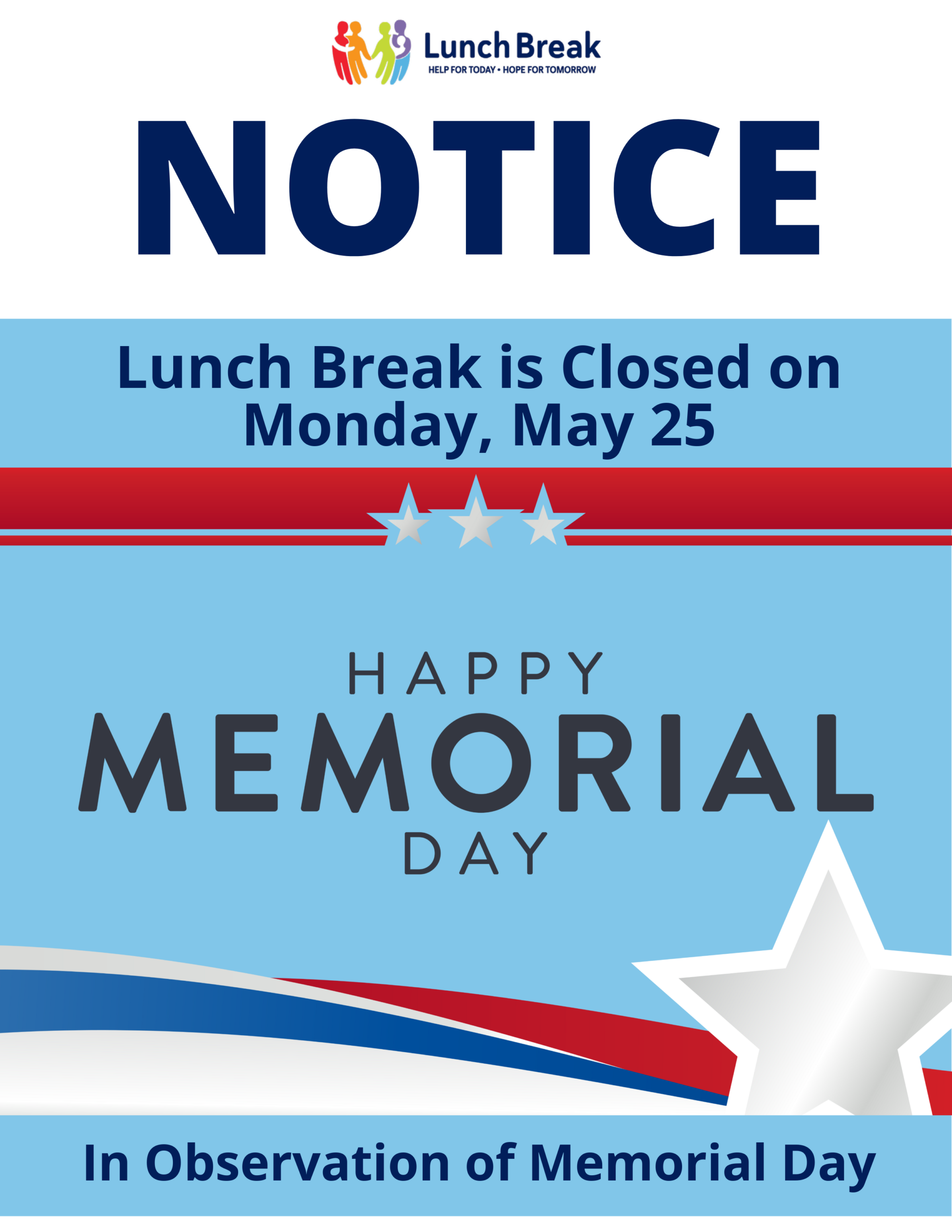 Lunch Break is closed on Monday, May 25, in observance of Memorial Day. We re-open on Tuesday, May 26. This Memorial Day we honor those who made the ultimate sacrifice in service to [...]